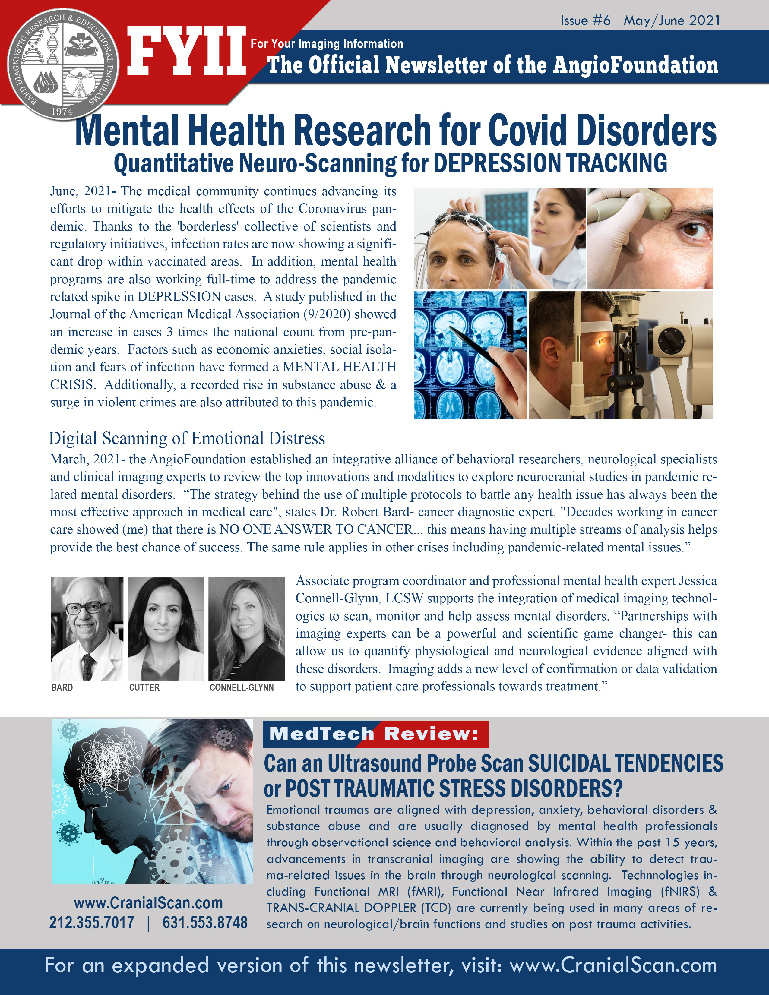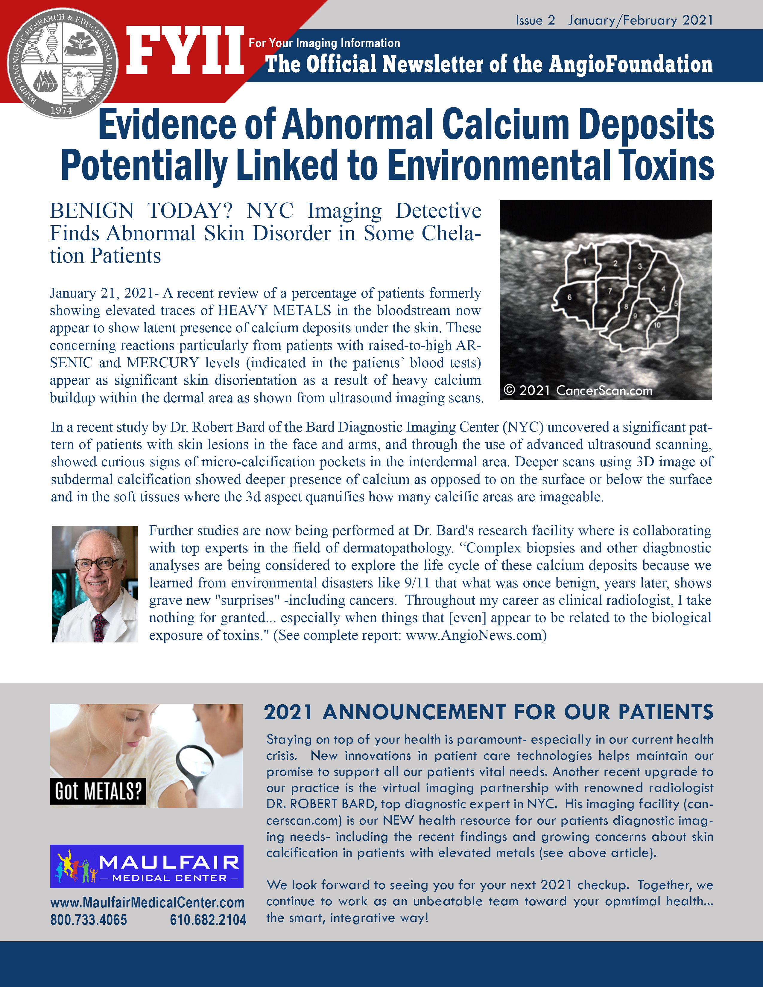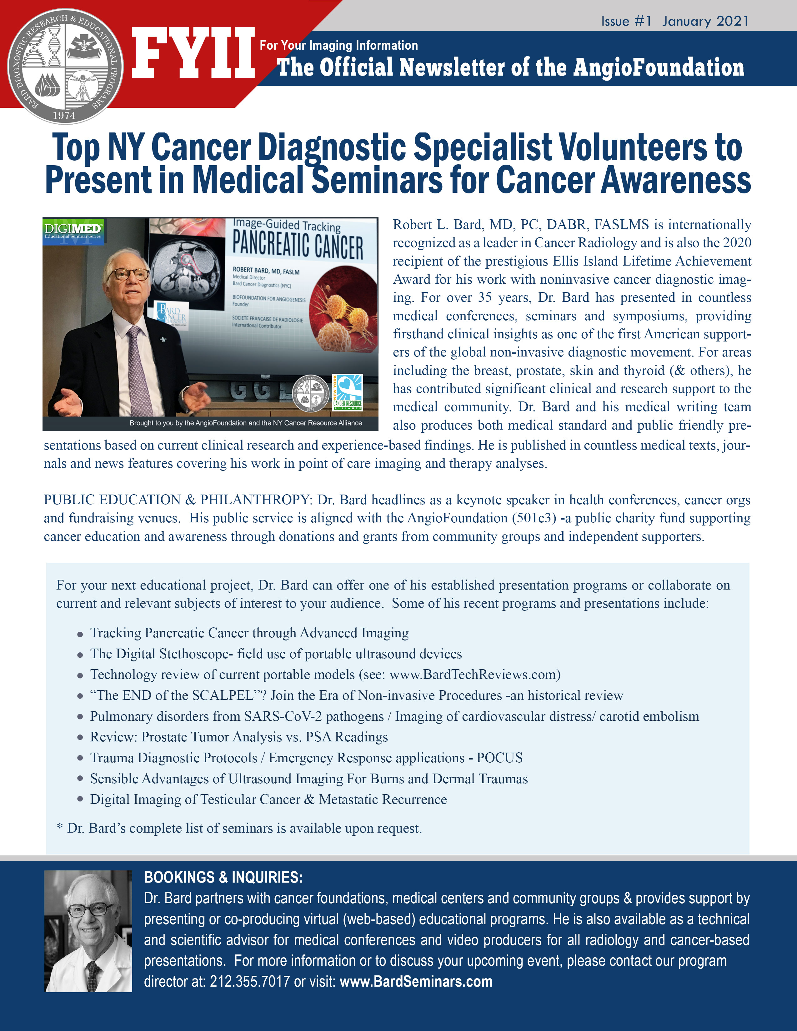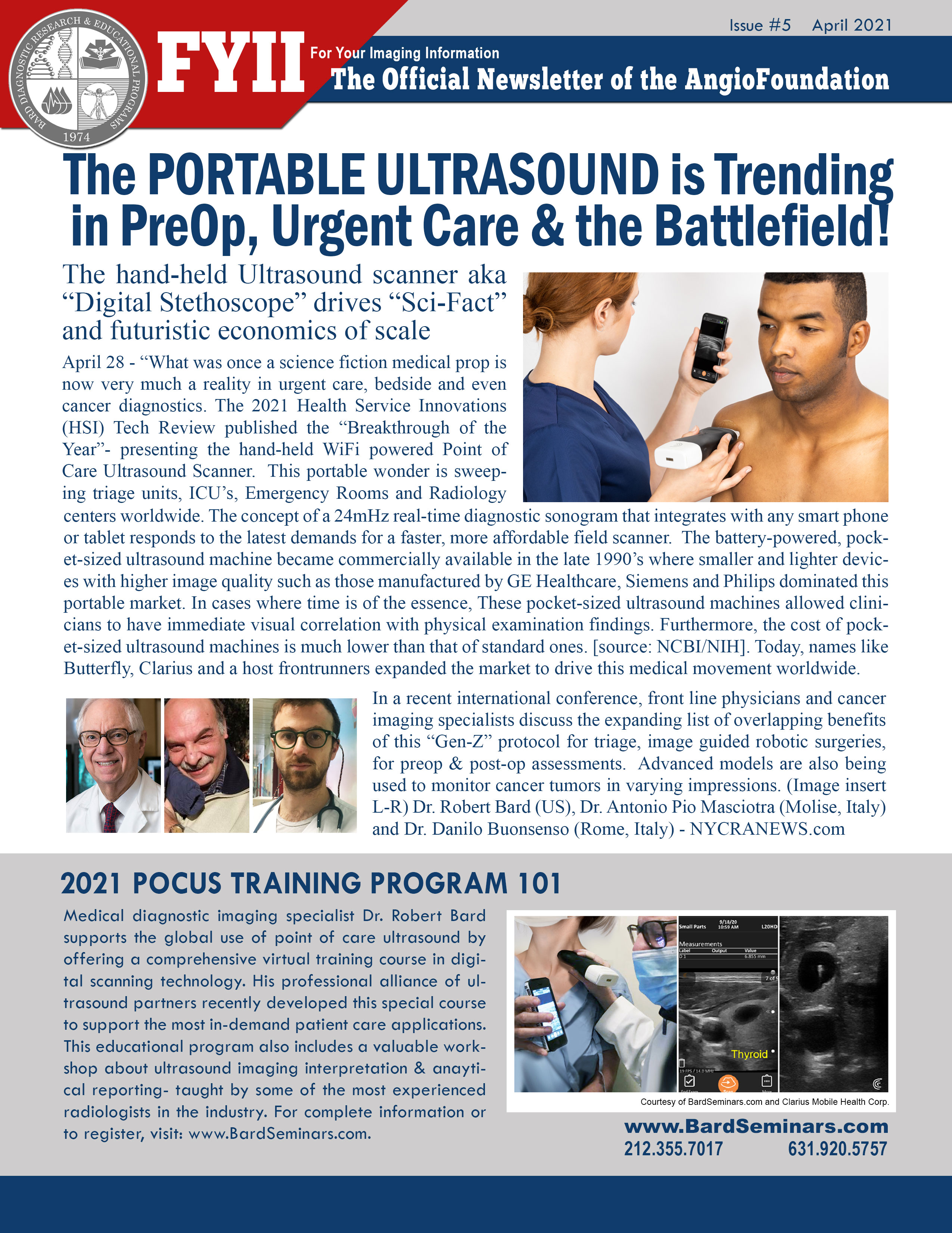ANNC: AngioFoundation newsletters (PDF's) • Issue 1: Intro Medical Seminar Series • Issue 2: Heavy Metal Deposits x Env. Toxins • Issue 3: Cancer in the Fire Service / F.A.C.E.S. Issue 3A: SALTY/ Toxins ON Rescue Workers • Issue 4: Burn Pits Cancers Ref: FF Toxic Exposures • Issue 5: National POCUS Training Program • Issue 6: Mental Health Research for Covid Disorders • Issue 7: Meet IPHA: The Integrative Pain Healers Alliance • Issue 8: Dense Breast Screening Pilot • Issue 9: Dense Breast Research (Feat. Dr. Noelle Cutter) • Issue 10: NORAD Inspired Recurrence Tracking