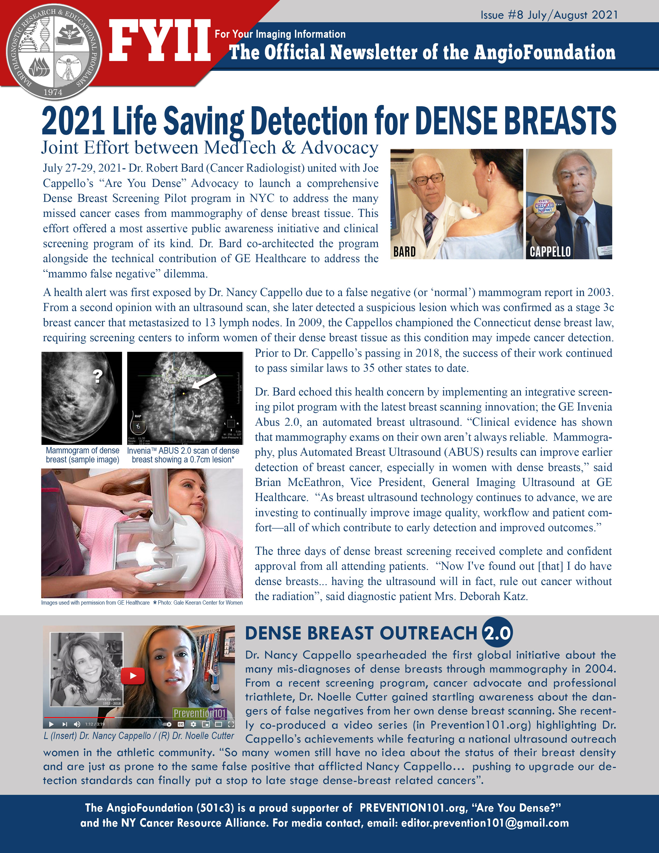 • Article 1 Dense Breast Research: Code Name IRON-WOMAN • Article 2: A Need to Standardize Screening for Dense Breast • Article 3: For ITN FEATURE-- ULTRASOUND FOR RESEARCH • Article 4: UNDERDIAGNOSED WOMEN PART 1 (Gilda and Nancy) [Print] • Article 5: R U DENSE? By Julia Chiappetta • Article 6: News Release (w/ Video) Dense Breast Cohort Research